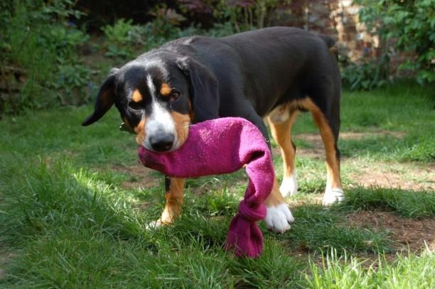 Voor deze klassieker gebruik je het best een oud fleecedeken of een spijkerbroek. Knip hier stroken van en vlecht de repen strak in elkaar. Maak aan het eind een stevige knoop en voila! Je kan er ook nog een tennisballetje aan vastknopen.