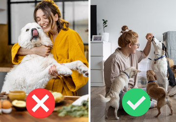 Niet doen: een hond omhelzen en vastpakken. Stress-signalen die erop wijzen dat een hond zich onprettig voelt: gapen, smakken, oogwit laten zien