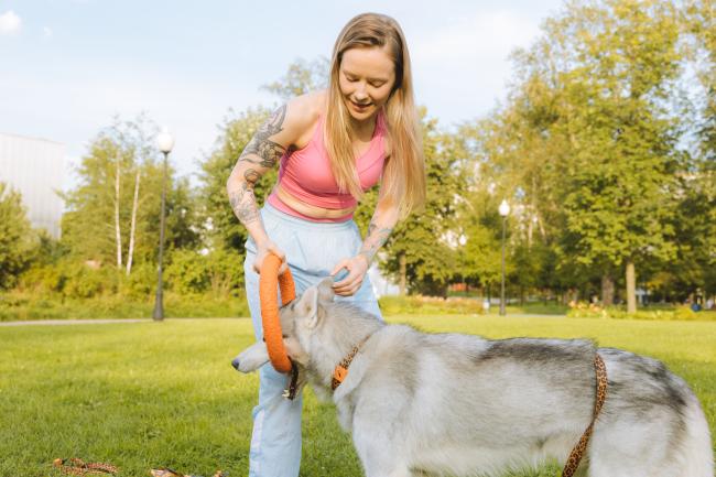 Wel doen: de hond ruitmte geven het tempo laten bepalen, ontspannen lichaamshouding