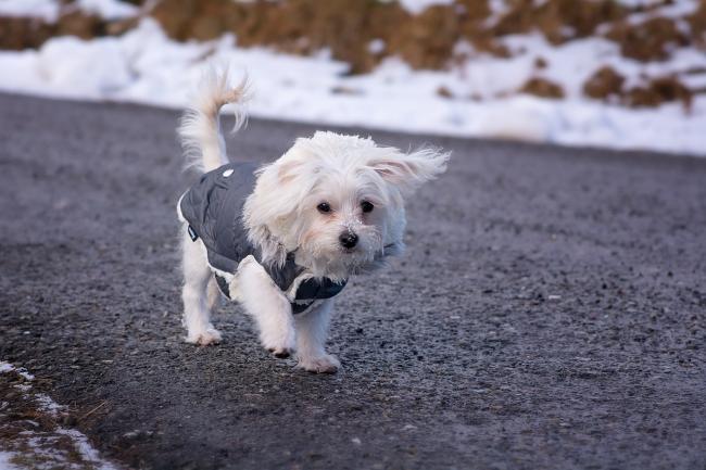 Je hond heeft in normale omstandigheden geen behoefte aan een (regen)jas zoals wij. Sterker nog: de buitenlucht is heel goed voor hem! Zijn vacht is heel goed in staat om de temperatuur van zijn lijf goed te reguleren. Ook een beetje regen is geen probleem, als je de hond bij thuiskomst maar weer lekker droogwrijft met een handdoek. Maar, voor lange wandelingen in de sneeuw is het wel belangrijk om op te letten en de vacht droog te houden. Voorkom dat er sneeuw en ijs zich gaat ophopen in de vacht, en bedek kortharige honden met blote buikjes of puppy's eventueel met een hondendekje of hondenjas.