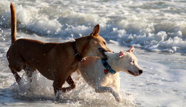 - Let goed op lichaamstaal: sommige grommetjes en blafjes zijn speels bedoeld, maar als een hond de andere hond terechtwijst met scherpe grommen of uithalen, neem dan afstand en haal de honden uit elkaar.